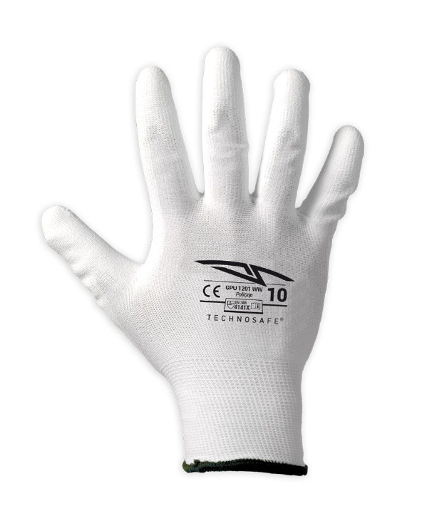 I guanti Poligrip associano l’elasticità, il comfort e la sensibilità tattile della maglia senza cuciture ad una sottilissima pellicola di poliuretano che garantisce una elevata resistenza all’abrasione ed una presa sicura anche su superfici bagnate. Gli articoli della linea Poligrip non lasciano residui e non macchiano il prodotto, sono traspiranti e si distinguono per la straordinaria destrezza. Guanto a 5 dita con forma anatomica (destra/sinistra) supporto in poliammide col. bianco, spalmatura su palmo e dita in poliuretano col. bianco, polsino elasticizzato col. bianco.