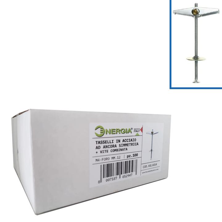 Scatola 100pz tasselli acc. 4mm ancora simmetrica con vite