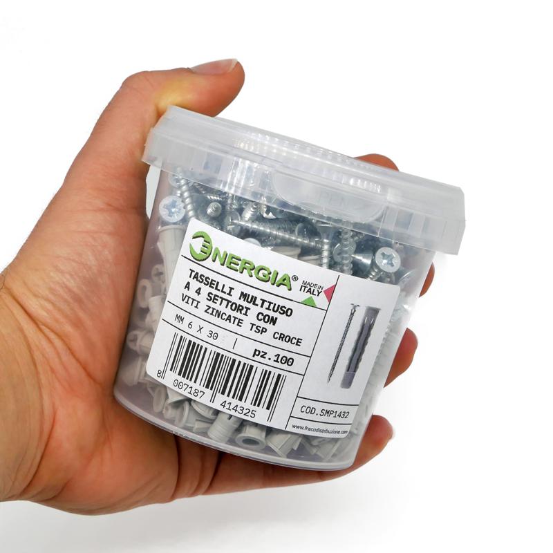 Barattolo 100 tasselli 6mm nylonf4 + viti