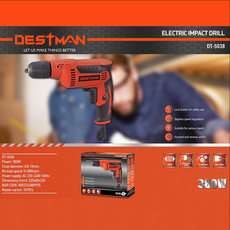 Il Destman DT-5038 risolve il problema comune dei trapani troppo ingombranti o poco precisi. La sua combinazione di potenza mirata e design compatto lo rende lo strumento ideale per lavori dettagliati e riparazioni domestiche.